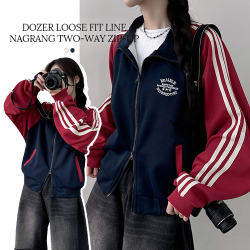 [간절기템!/블록코어] 도저 루즈핏 자수 배색 라인 나그랑 투웨이 져지 집업 (2color)