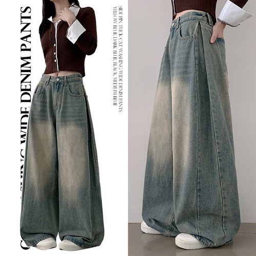 [숏,롱/힙한무드!/교복템] 신즈 옆핀턱 캣 워싱 와이드 데님 팬츠 (5color) - 청바지 겨울 바지