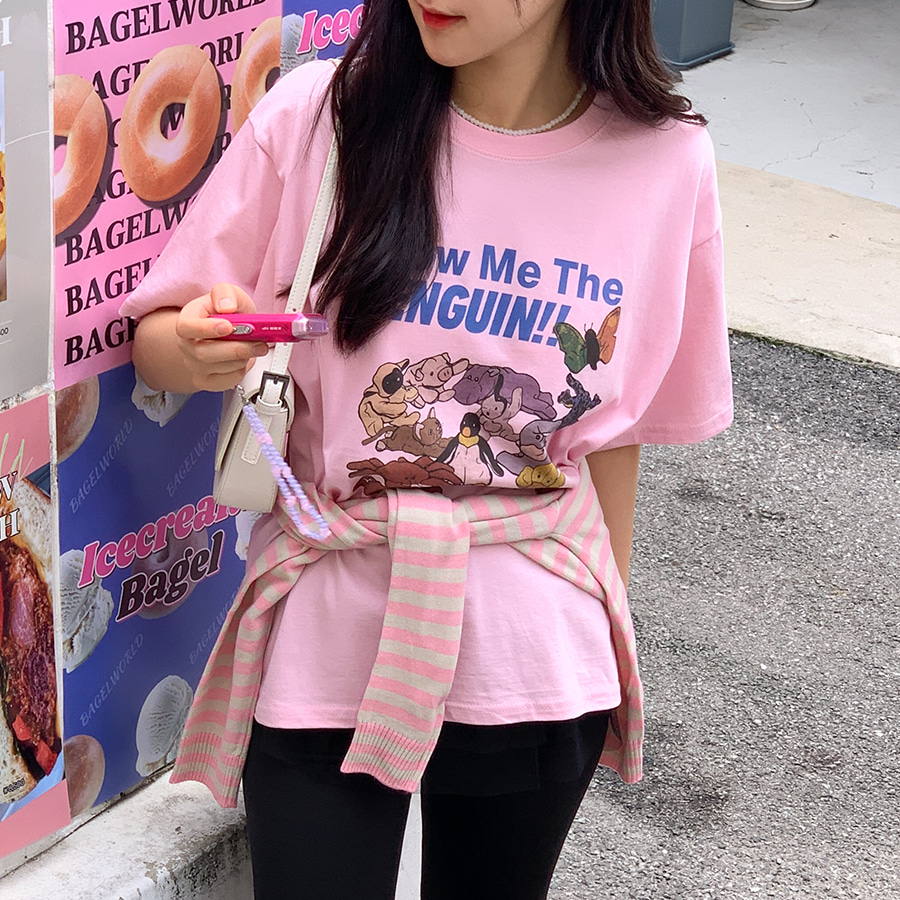 [부드러운촉감👍] 애니멀 루즈핏 반팔티셔츠 핑크티셔츠 레터링 면티 여리여리 여리핏반팔티셔츠 봄신상 봄반팔 꾸안꾸 캐릭터 프린트반팔 캐주얼 레이어드