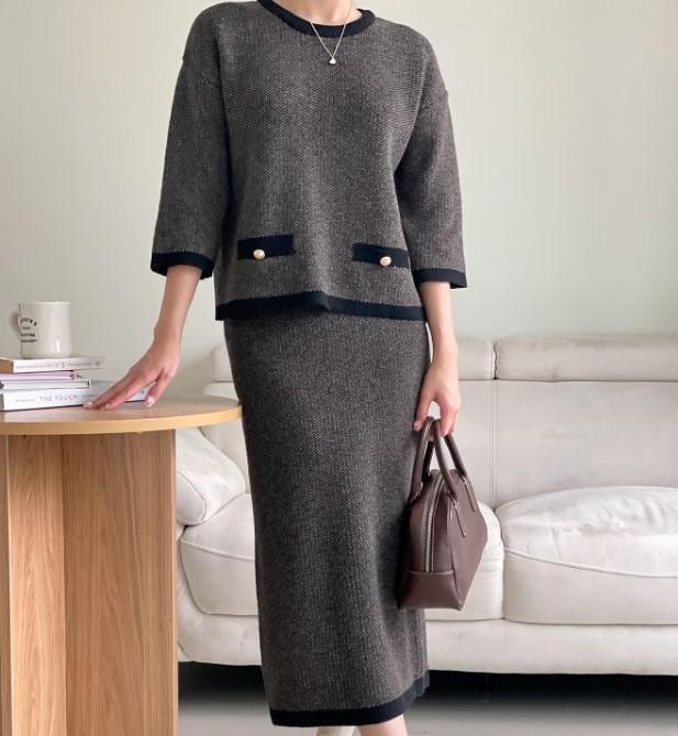 코코 니트 배색 7부 캐시미어 세탁기가능 베이지 3컬러