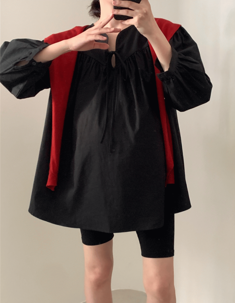 임부복 만삭가능* 봄&가을 하객룩 셔링 오버 블라우스 2col