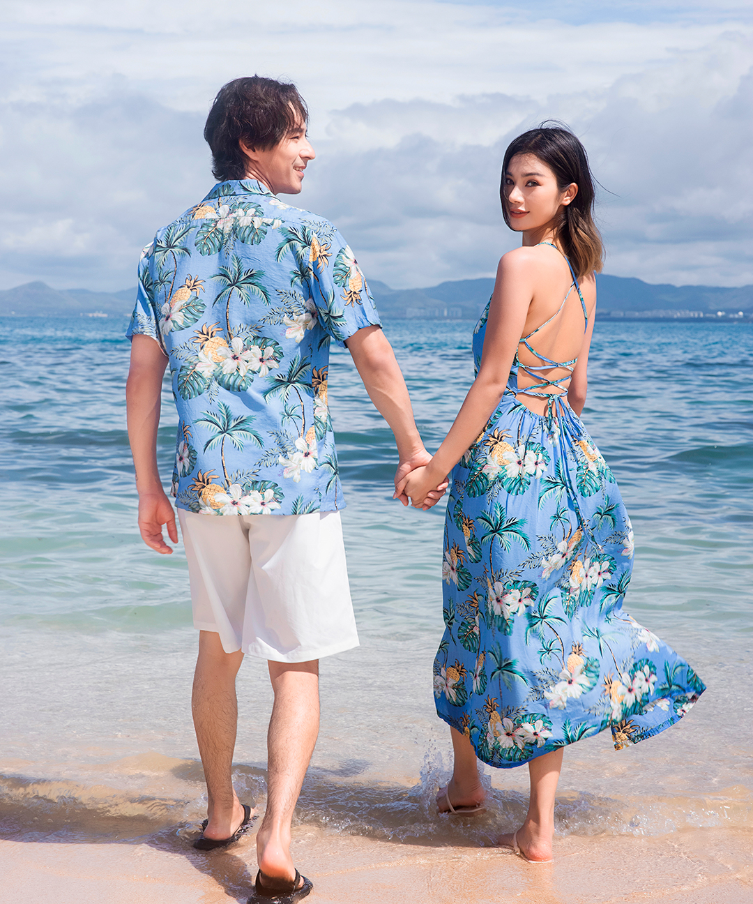 몰디브의 아침 휴양지 커플룩 시밀러룩 신혼여행 하와이안 동남아 바캉스 허니문 휴가