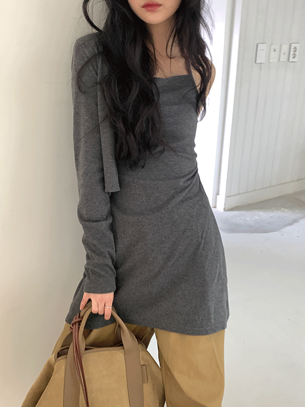 [세트구성!] 우키쉬 홀터넥 원피스 레이어드 가디건 세트