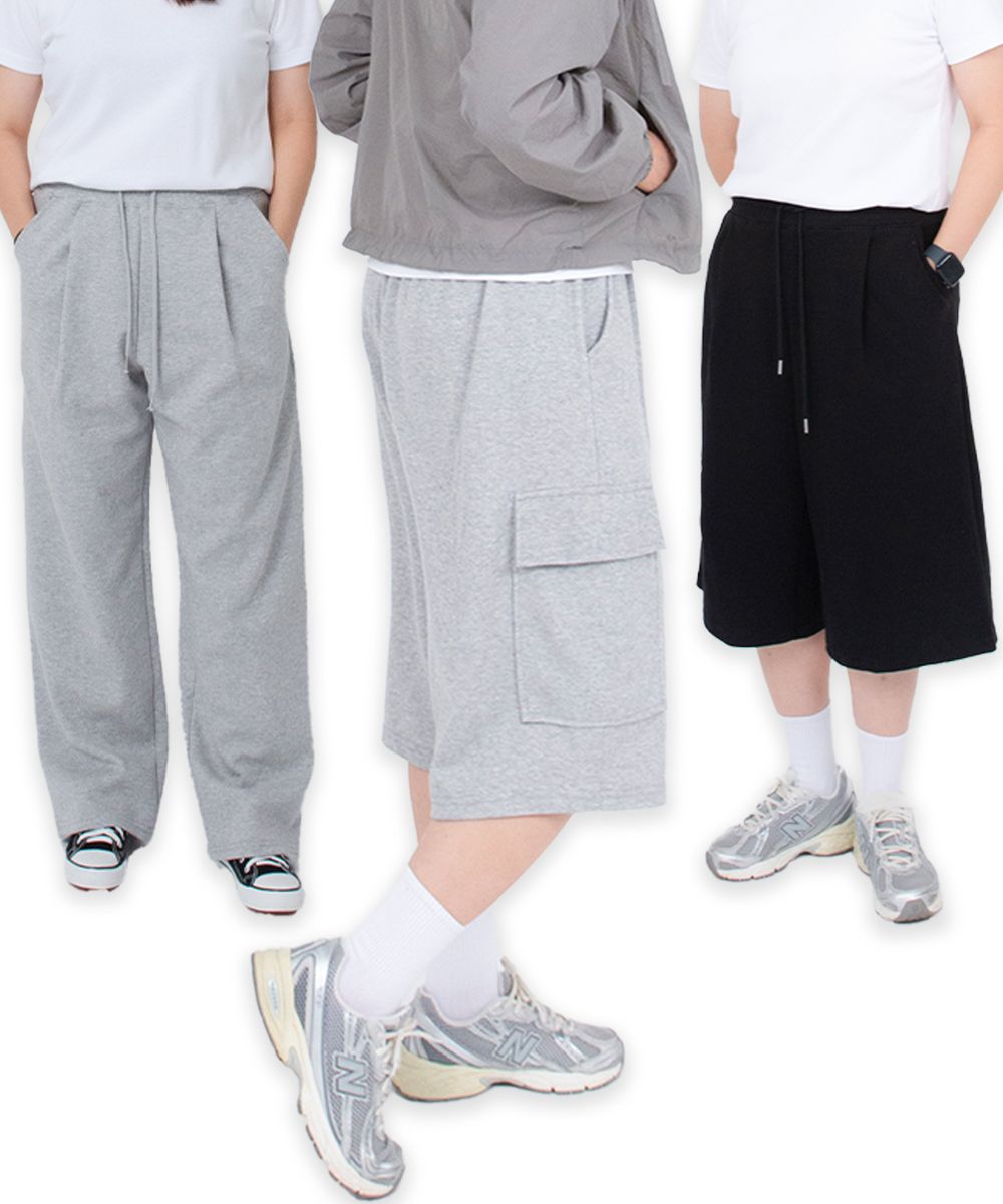 [~3번/자체제작]빅사이즈 와이드 원턱 카고 버뮤다 팬츠 트레이닝 반바지 - 2color
