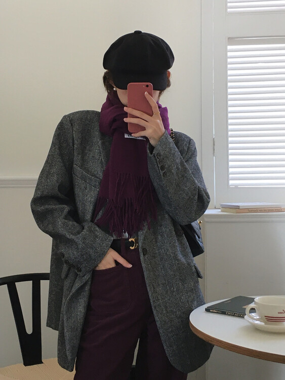 바네사 헤링본 패턴 울 루즈핏 싱글 버튼 단추 데일리 테일러드 하프 자켓 코트