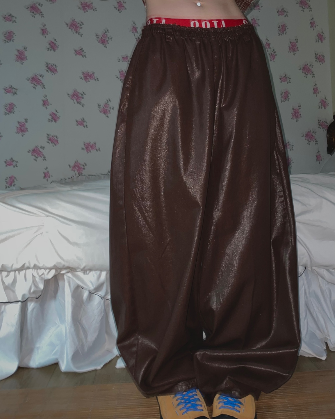 (2color) 메츠케 레더 코팅 벌룬 와이드 오오티제이 밴딩 팬츠
