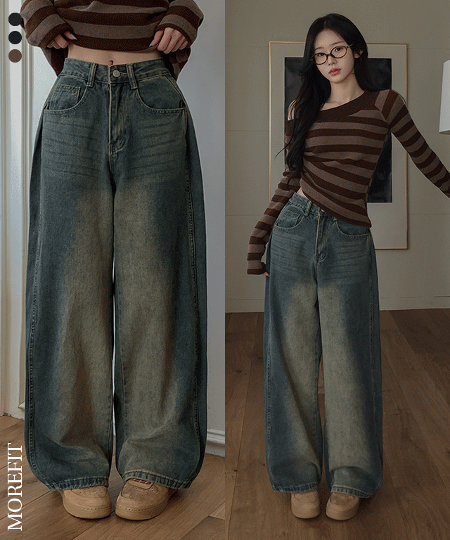 [핏강추🤍] 링킨 사이드 핀턱 와이드 데님 롱 팬츠 3colors