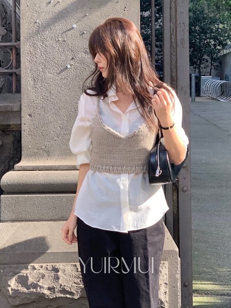 vergamot 베르가못 로엔 울 브이넥 크롭 니트 탑 뷔스티에 3color