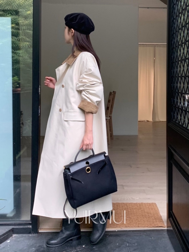 vergamot 베르가못 스웨이드 배색 더블 롱 바바리 트렌치 코트 2color