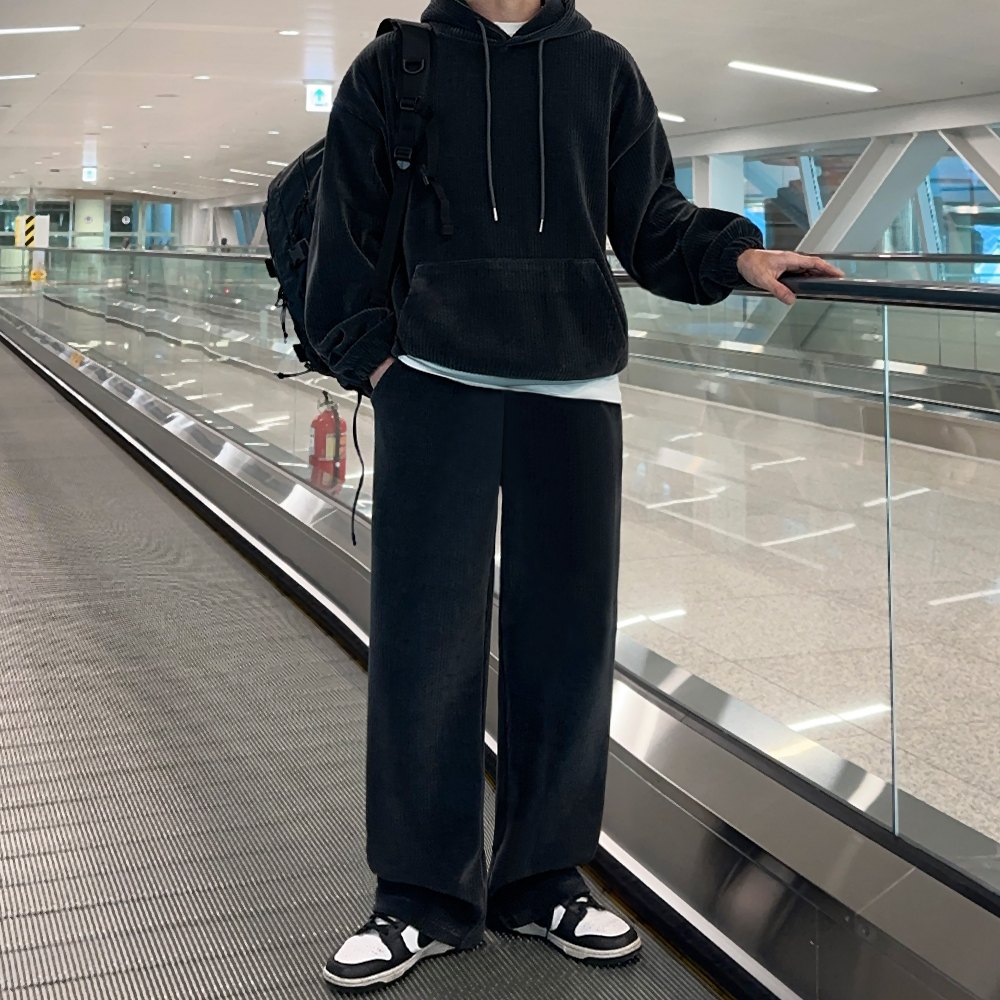 빅사이즈 코듀로이 골덴 트레이닝 셋업 와이드 밴딩 츄리닝 팬츠 후드 티셔츠 스웻셋업 헬스복 운동복 벨벳 합포 고중량 두꺼운 겨울 트레이닝세트