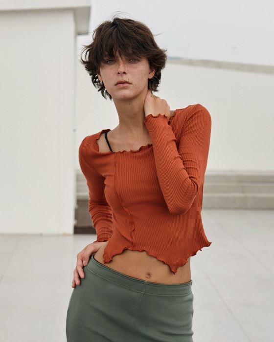 웨이븐 프릴 롱슬리브DEVI-T0112-펌킨