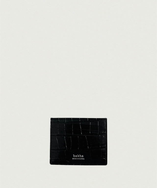 [국내생산/소가죽] 블랙 소가죽 사선 포켓 와니 크로커 홀더 카드지갑