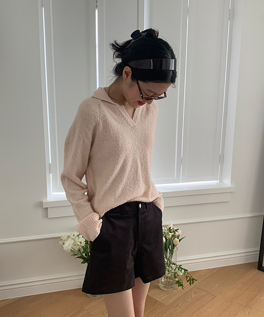 웨더 부클 오픈 카라 니트 (4col) weather