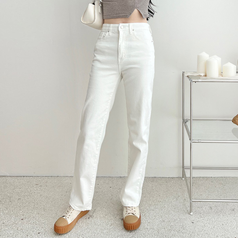 화이트팬츠 여성흰바지 스판일자청바지 스판일자바지 HY773 스판 밴딩 통일자