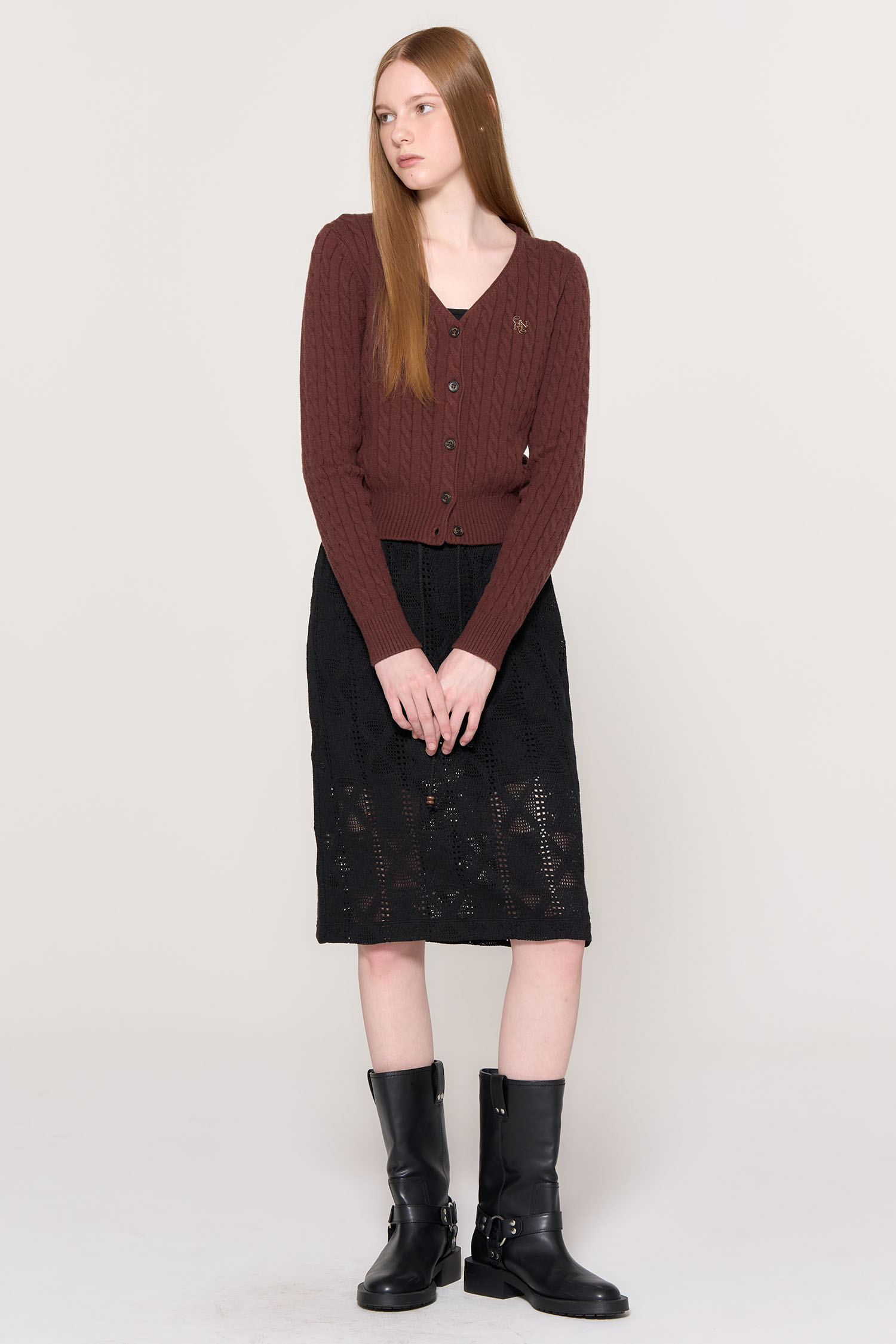 WOMAN 뉴클래식 울 케이블 브이넥 가디건 [BROWN]