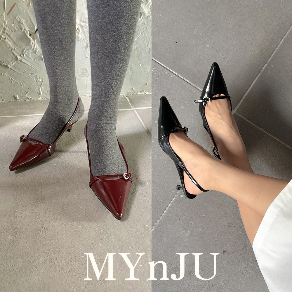 마이앤쥬 24FW 버클 비죠 뾰족코 스트랩 미들 슬링백 스틸레토 힐 여성 캐쥬얼 정장 구두(3col) 4cm굽
