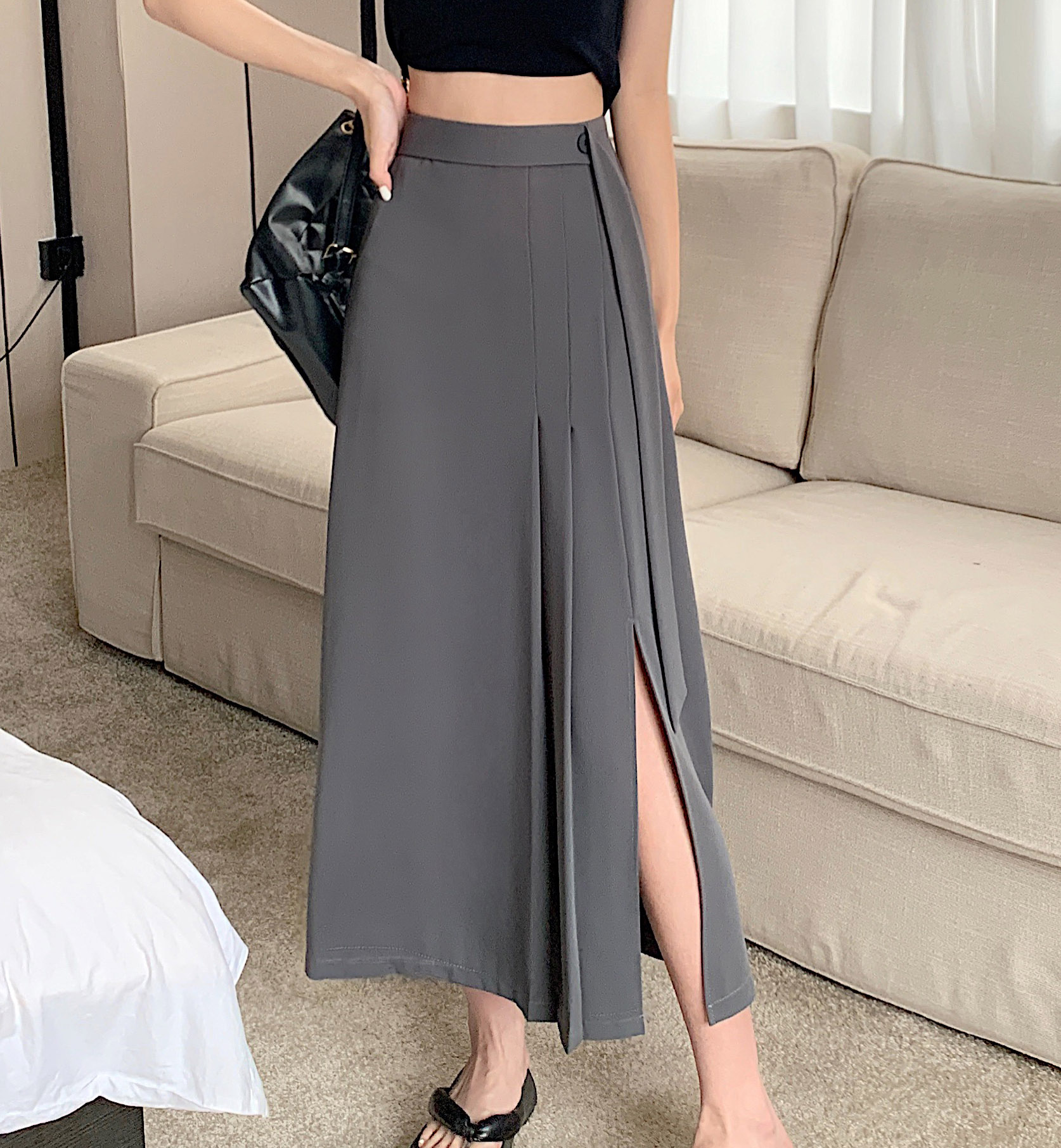 단정 출근룩/여행룩 플리츠 주름 스트랩 단추 트임 포인트 여리핏 a라인 정장 플레어 롱스커트
