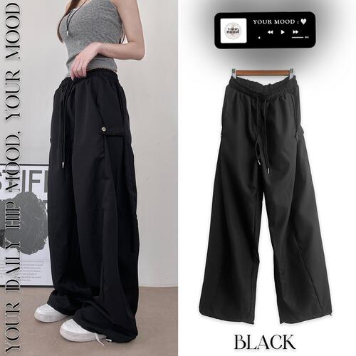 [핏보장/최저가] 사이드 스냅 버튼 단추 똑딱이 나일론 스트링 밴딩 와이드팬츠 벌룬팬츠 트레이닝바지 밴딩바지
