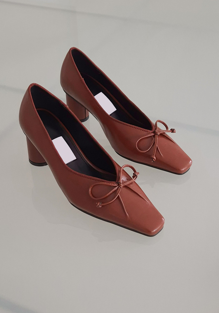 리본 포인티드토 V라인 둥근굽 펌프스 6cm 3컬러