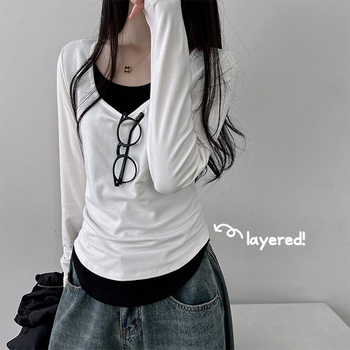 [여리무드/러블리] 디노 유넥 레이어드 밑단 굴림 긴팔티 (5color)