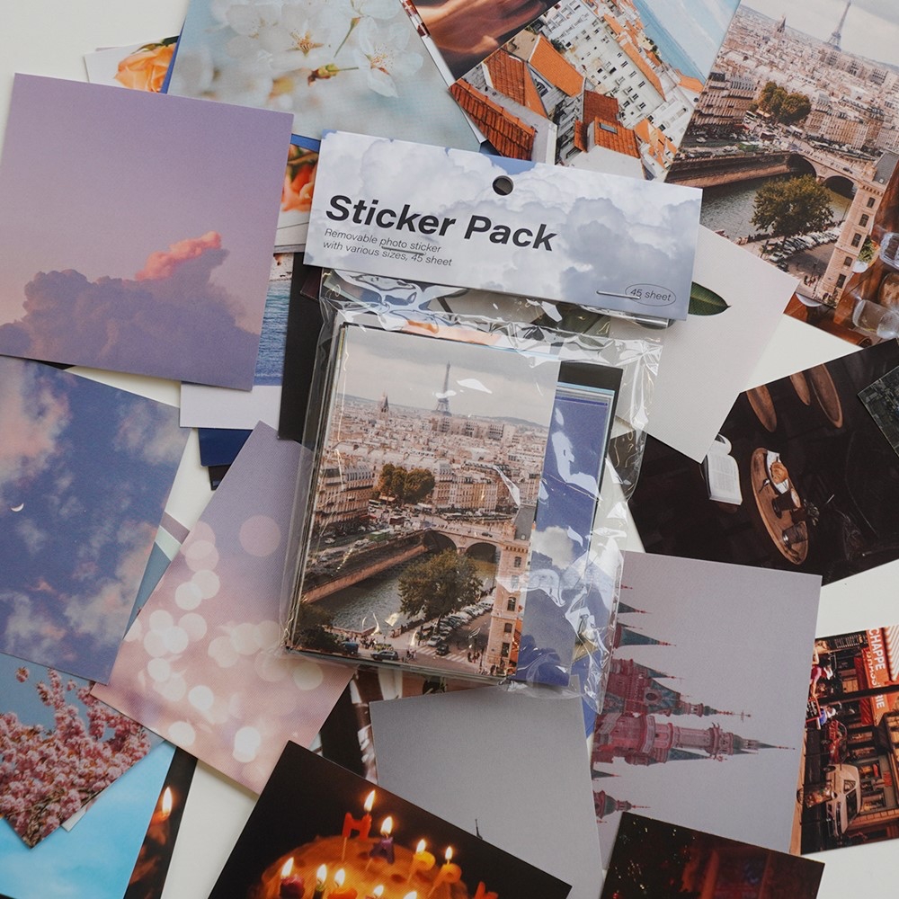 리무버블 감성 다꾸 스티커 45장 세트 [SET 스티커팩 다이어리 꾸미기 노트북 아이패드 맥북 사각 데코 사각 포토 큰 빅 포장스티커]