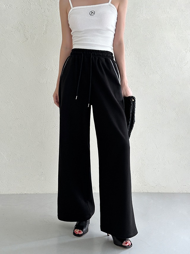 하리 띠 배색 밴딩 일자핏 롱팬츠