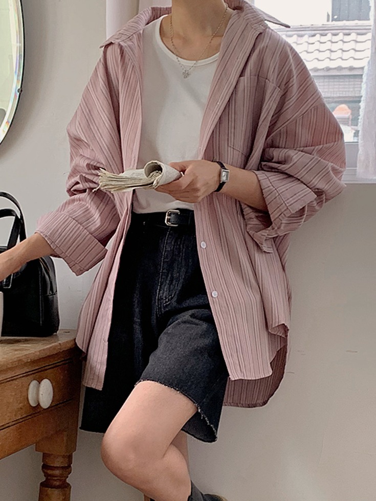 [2천장 돌파✨] [무료배송] [44-120] 모니루브 코튼 스트라이프 루즈핏 셔츠( 봄-가을-꽃놀이룩-데일리룩-데이트룩-공항룩-포인트룩-캐주얼룩-빅사이즈-120사이즈-자체제작-레이어드-체형커버-통통녀 )