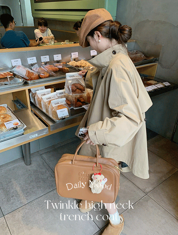 [고퀄⚡] 트윙클 하이넥 트렌치 코트 CT3165가을 간절기 하프 롱 배색 기본 베이직 루즈핏 오버핏 하객룩 캠퍼스룩 데이트룩 여행 휴가룩 A라인 핀턱