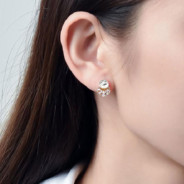 실비아 크리스탈 진주 스터드 은침 귀걸이