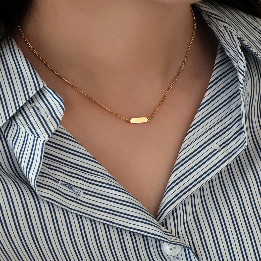 925실버 14k 골드 슬림 육각 바 펜던트 목걸이