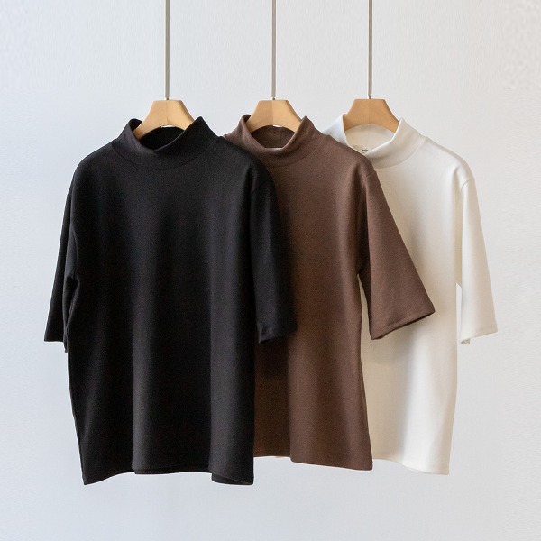 피치 겉 기모 5부 소매 이너 반목 목폴라 티셔츠