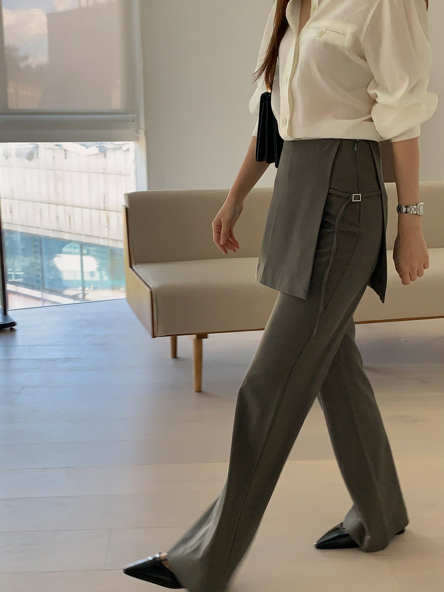 오브엘 비조 레이어드 랩 스커트 일자 롱 슬랙스 3color