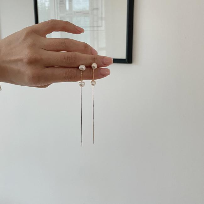 [유주얼리] 신주 롱 담수진주 드롭 귀걸이