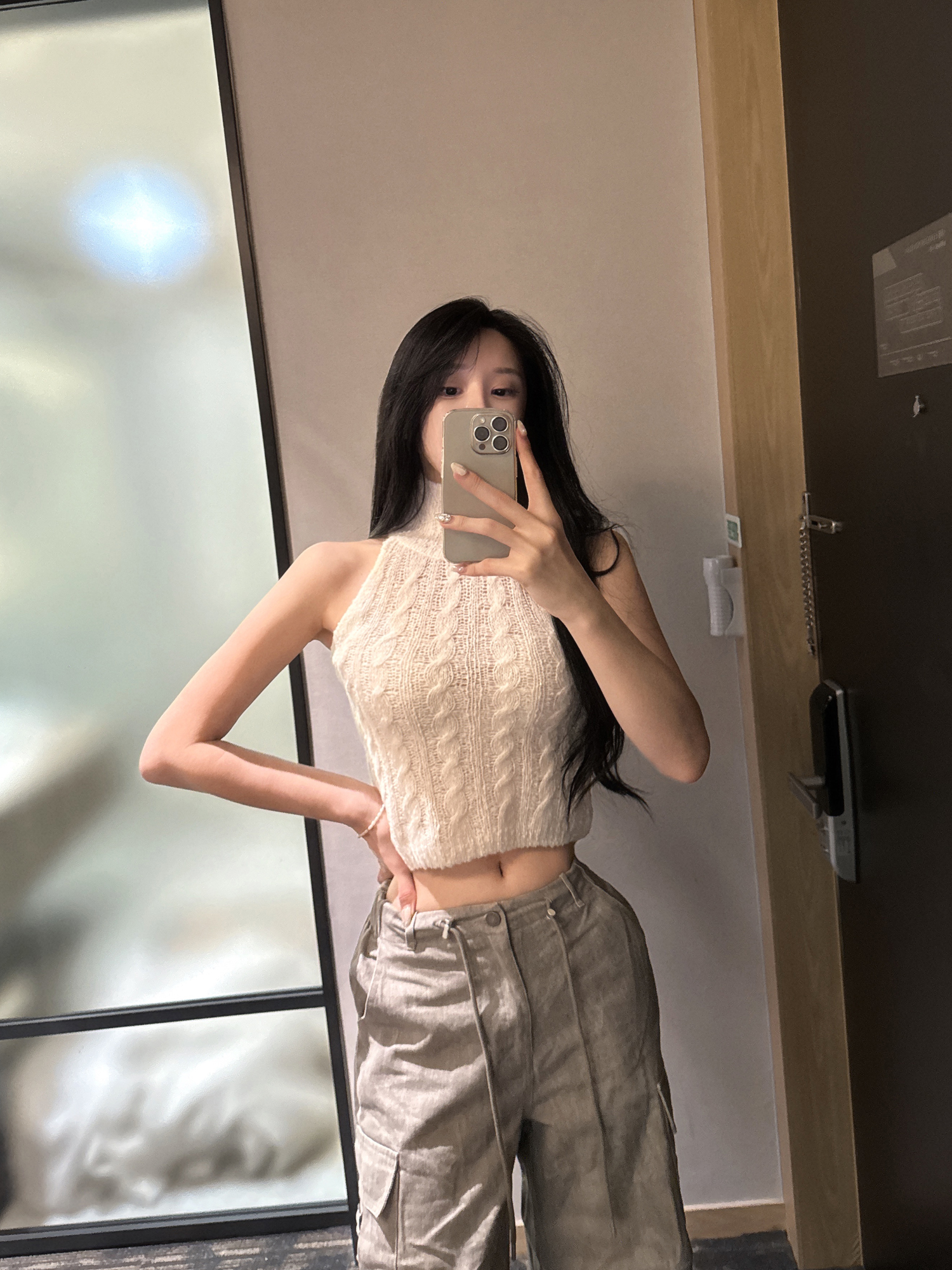 C 캐시미어 펄 꽈배기 홀터 나시 (수입)