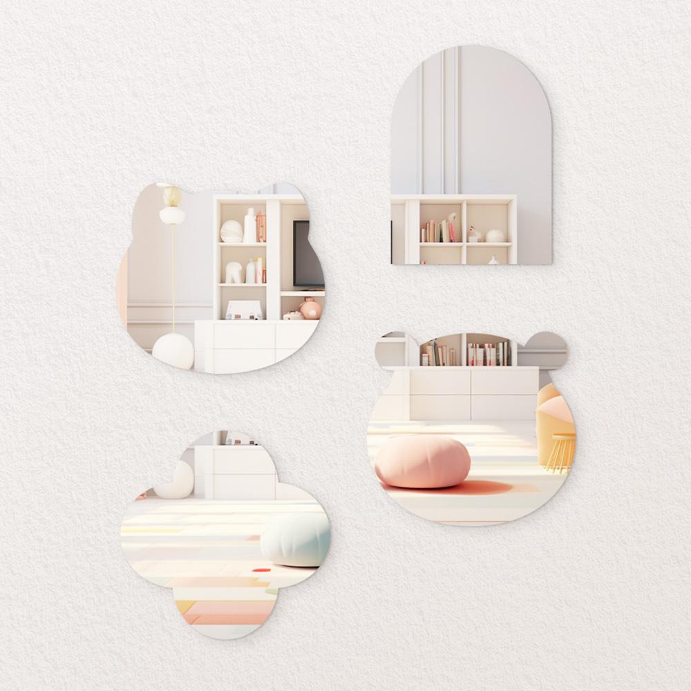 2mm 귀여운 아크릴거울 붙이는거울 곰돌이 무타공 안깨지는 화장대 욕실거울