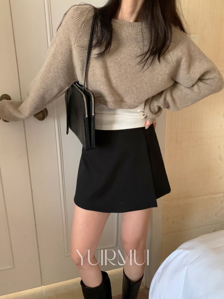 mellounge 멜라운지 울 보트넥 숏 크롭 맨투맨 니트 3color