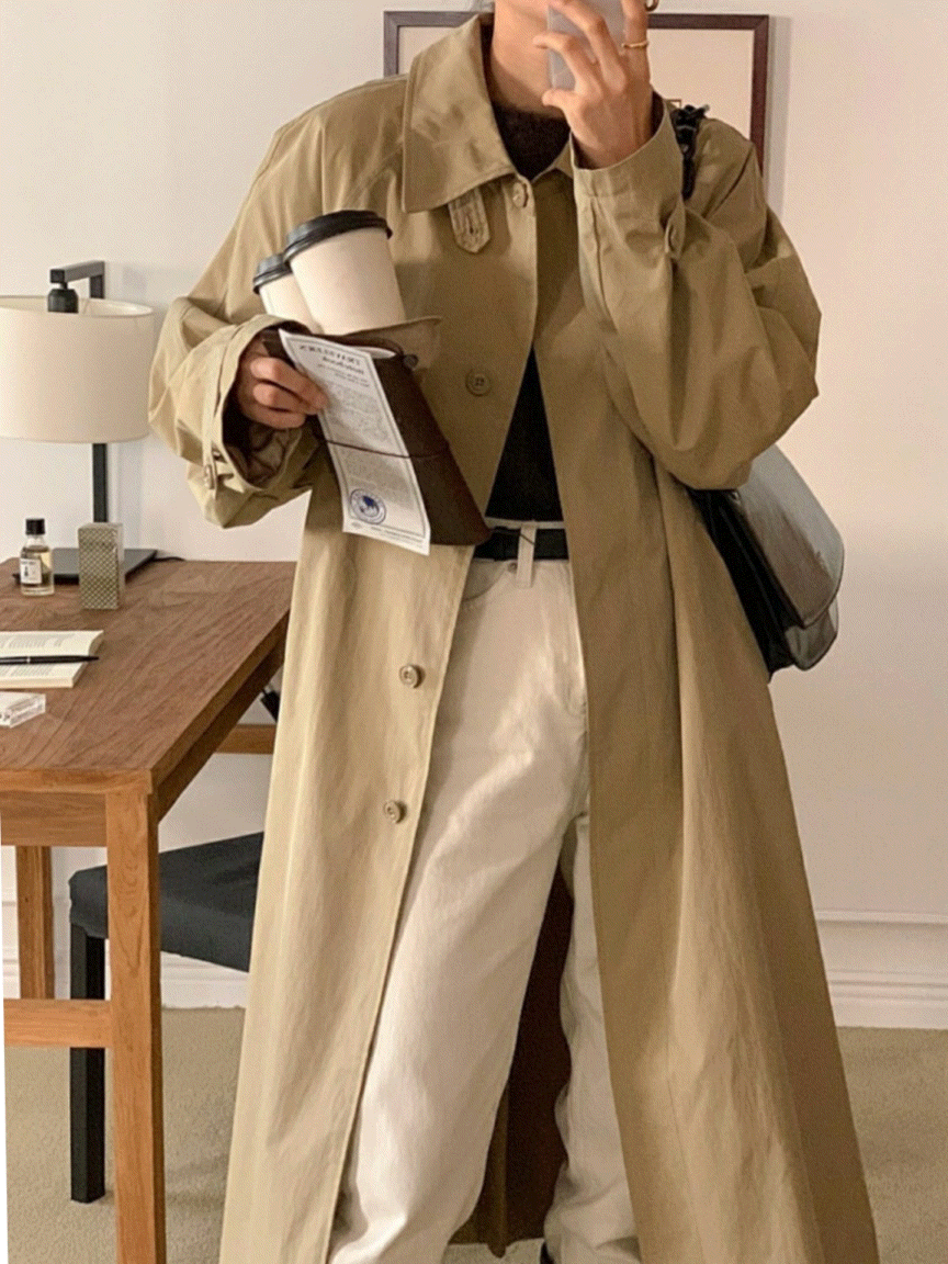 [당일출고] 오버핏 하이넥 트렌치 롱코트 봄야상 바바리롱코트 봄가을아우터 (데이트룩/나들이룩/주말룩)