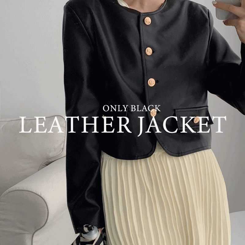 [마미] 스텐 레더 라운드 자켓