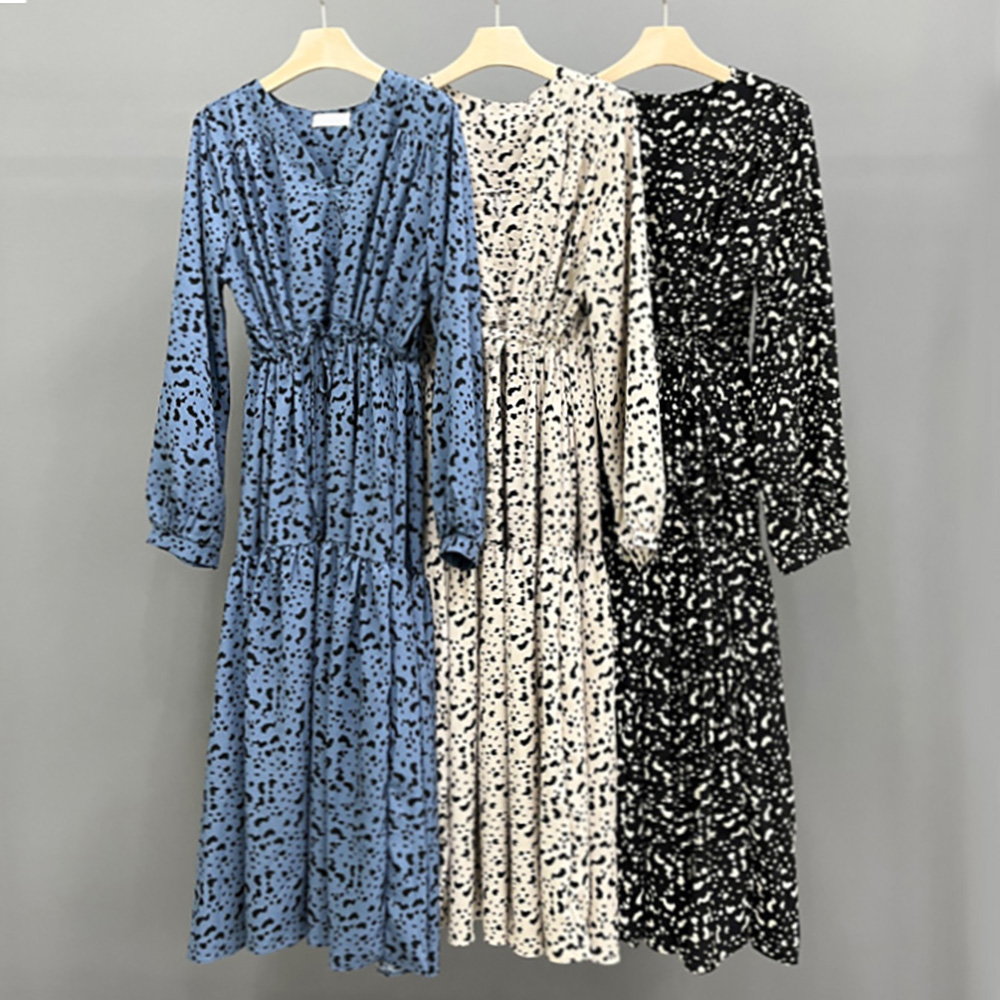 55-110사이즈 빅사이즈 여성 루즈핏 가을 끈 브이넥 스트링 레오파드 호피 롱 원피스