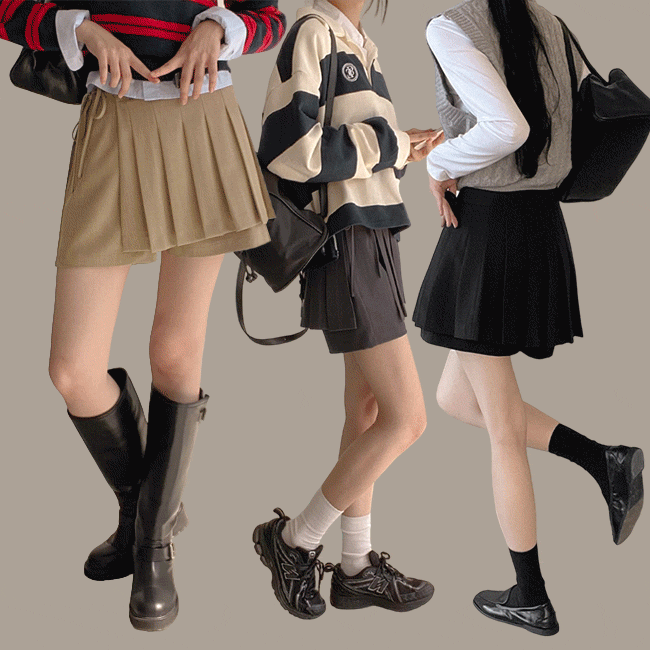 [사이드포켓/랩스커트세트] 레이어드랩플리츠하프팬츠 (3color)