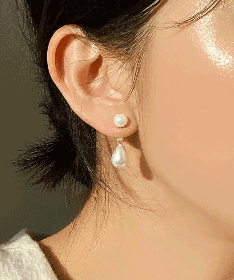 [무배] 실버925 투웨이 물방울 드롭 진주 블랙 오닉스 원석 귀걸이