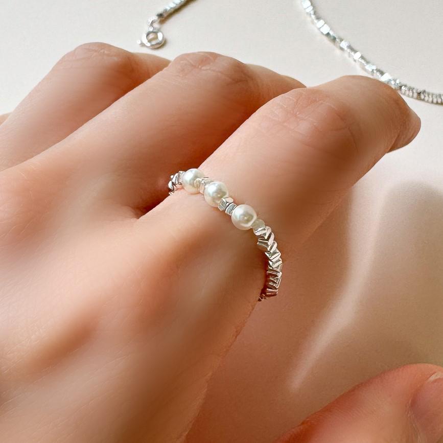 925실버 칩 진주 반지 은커플링 은제품 무광 고무줄 은 반지
