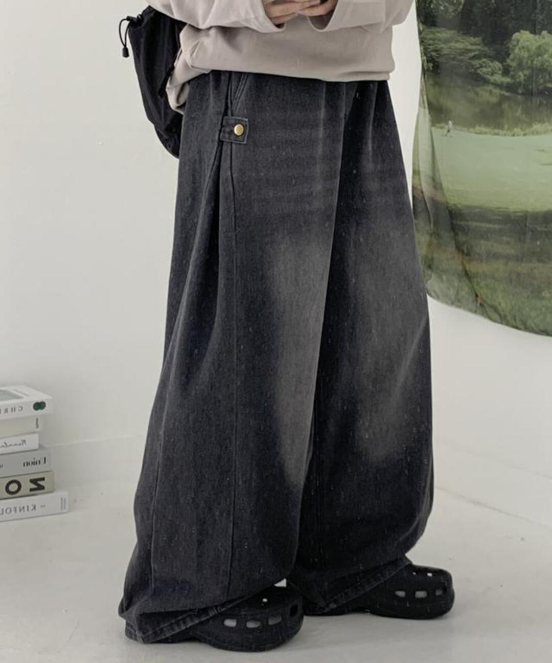 (숏,롱)루스 핀턱 스냅 데님팬츠