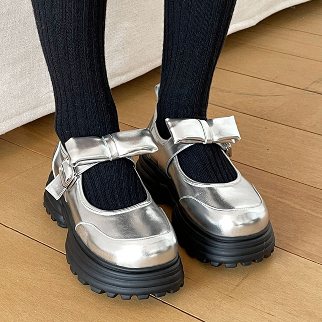 [굽5cm/230~250] 통굽 로퍼 키높이 가보시 리본 스트랩 버클 작작-발발