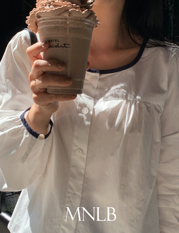 [🔥라스트특가40%][셔링블라우스/하객룩][직진배송][MNLB] 메릴본 배색 라이닝 스퀘어넥 코튼 블라우스