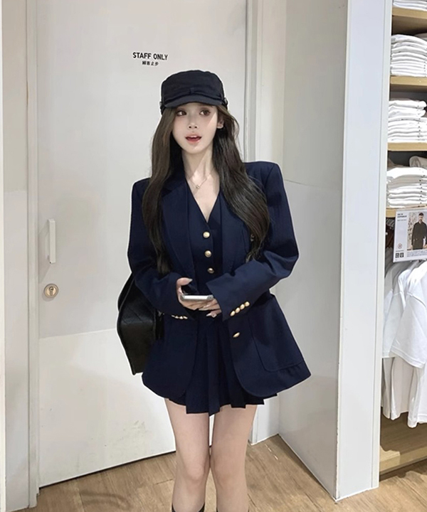 무료배송 [코디세트 자켓+베스트+스커트] 네이비클래시컬 수트코디룩 셋업 #가을 #아우터