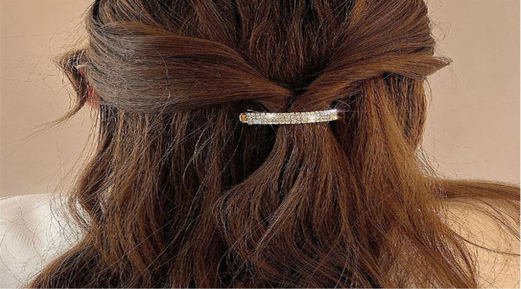 여자 반묶음 포니테일 반달모양 큐빅 헤어핀 머리 삔