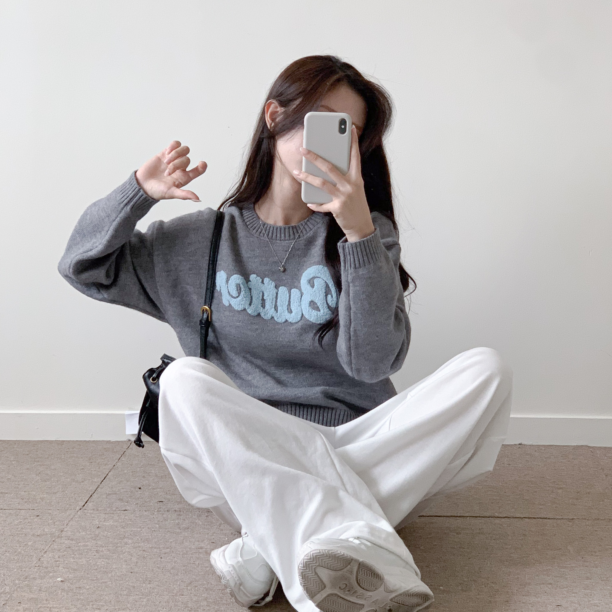 (당일) [아방핏/큐트] 버터 레터링 촉감좋은 긴팔 니트 스웨터 (5color) 시즌오프