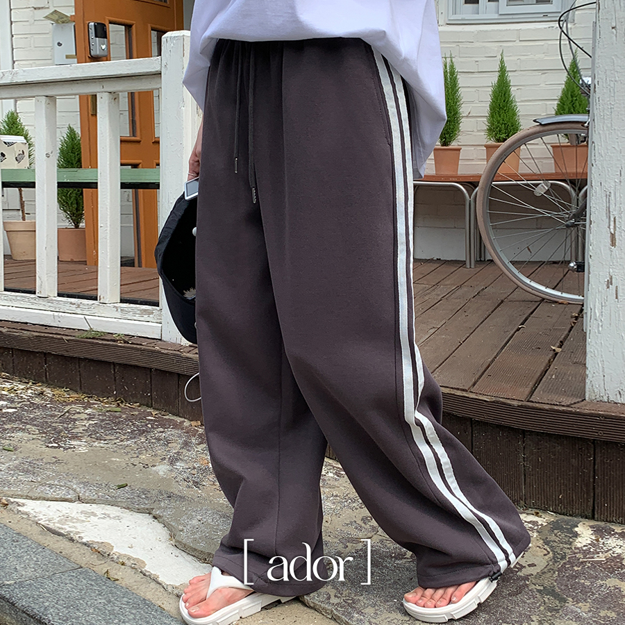 [MADE💙밑단투웨이] [당일발송] [봄/가을버전] [기모버전] 더블라인 힙 트랙팬츠 봄 가을 간절기 겨울 밴딩팬츠 조거팬츠 면트레이닝 와이드팬츠 여자추리닝 밴딩바지 사이드라인 배색팬츠 밑단스트링