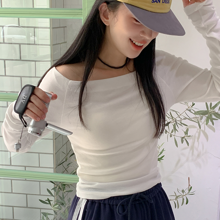 [신축성👍힙코디] 힙숄더 오프숄더 긴팔티셔츠 여자면티 힙스타일 봄신상 간절기룩 봄긴팔티셔츠 번따룩 여자긴팔 면티 레이어드 신축성좋은 무지티셔츠